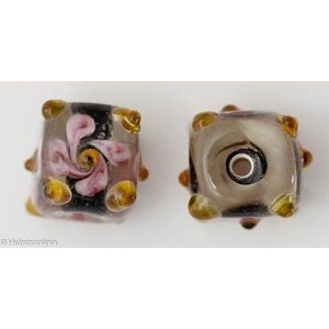 Lamppuhelmi kohokukkakuvio musta sisus + pinkki kukka, 12x9x9 mm, 1 kpl