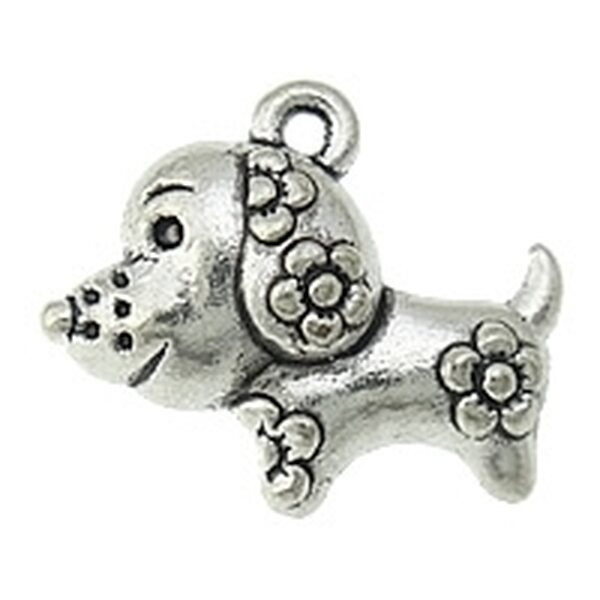 Riipus koira 17 x 14 x 6,5 mm antiikkihopea, 5 kpl