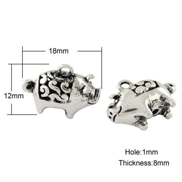 Riipus possu (3D) 15 x 11 x 8 mm antiikkihopea, 2 kpl